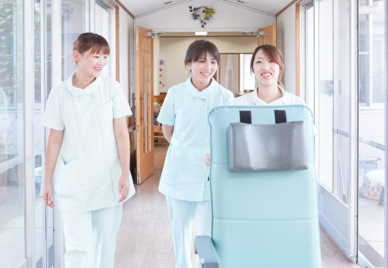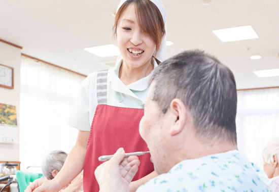 育児と仕事の両立を考えていた私は「せっかく働くなら、業務に集中したい!」そう思っていました。ここには託児所があるため子どもを安心して預けることでき、仕事にもしっかり向き合うことができる。そう思い入社を決めました。現在の仕事内容は、体操や申し送り、臥床介助、おむつ交換、昼食準備、トイレ誘導、夕食の準備など。利用者の皆さまが心地よい生活を送ることができるよう、日々サポートしています。