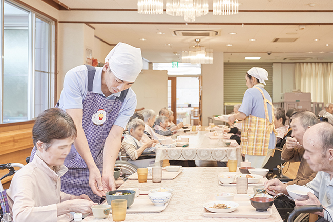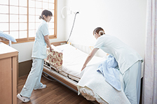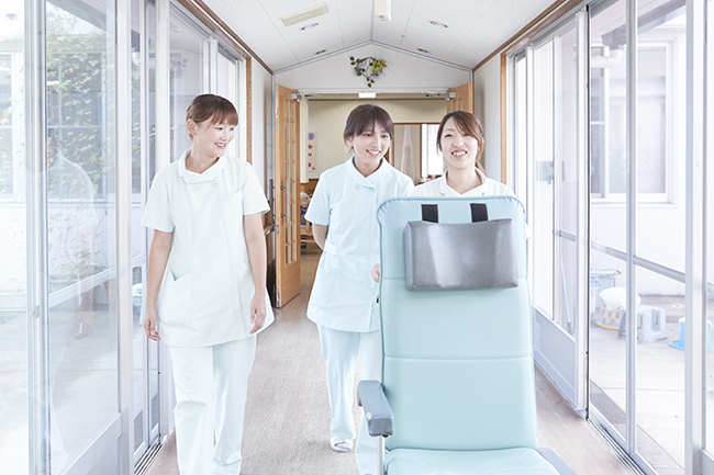 寝たきりの状態にある高齢者や、在宅療養では不安に思われる高齢者のために、医学的管理のもとで看護と日常サービス、リハビリテーション、その他必要な医療を提供。生活機能の向上を図りながら自立を支援し、家庭復帰をめざします。
